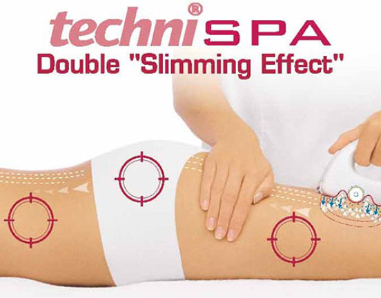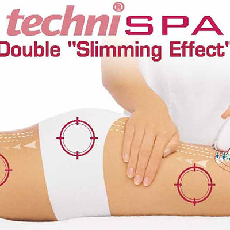 Отслабващата и антицелулитна терапия се извършва с иновативния апарат TechniSPA, който двойна дермо-липоаспирация и двойна йонизация и а моделиране на фигурата, отслабване, стягане и релакс. Благодарение на комбинацията от революционни технологии за намаляване на обиколките в проблемните зони (бедра, корем, ханш) и ефикасно повлияване на целулита, апаратът осигурява бързи и видими резултати, които по-трудно се постигат само с мануални терапии.